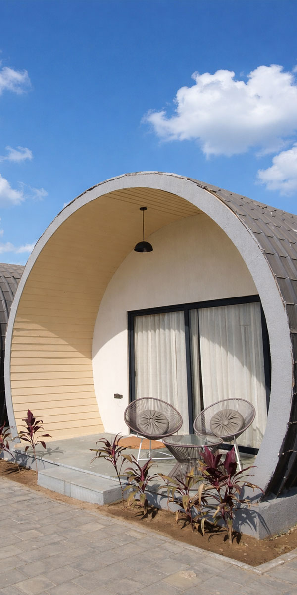 Our Hobbit-style cottages are designed specifically for comfort, with a smooth combination of aesthetics and function. Each air-conditioned cottage has a comfortable deck and a spacious interior, and includes some modern conveniences. Relax on your king-size bed, drink a cup of tea from your in-room kettle, or enjoy a recliner on your own private terrace as you take in the tranquil atmosphere of the beautiful beach. Your stay at Praveg Beach Resort Diu is not simply about luxury; it will be an incredible experience of coastal living at its finest!