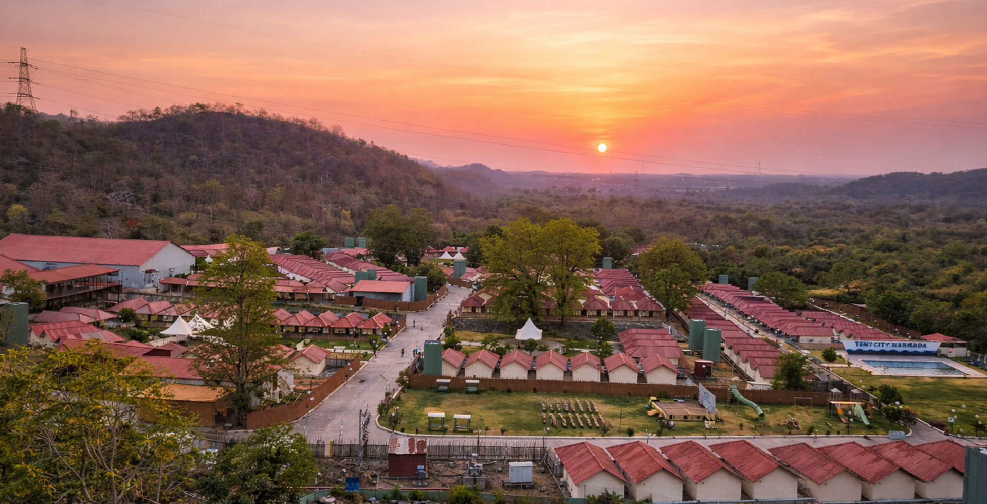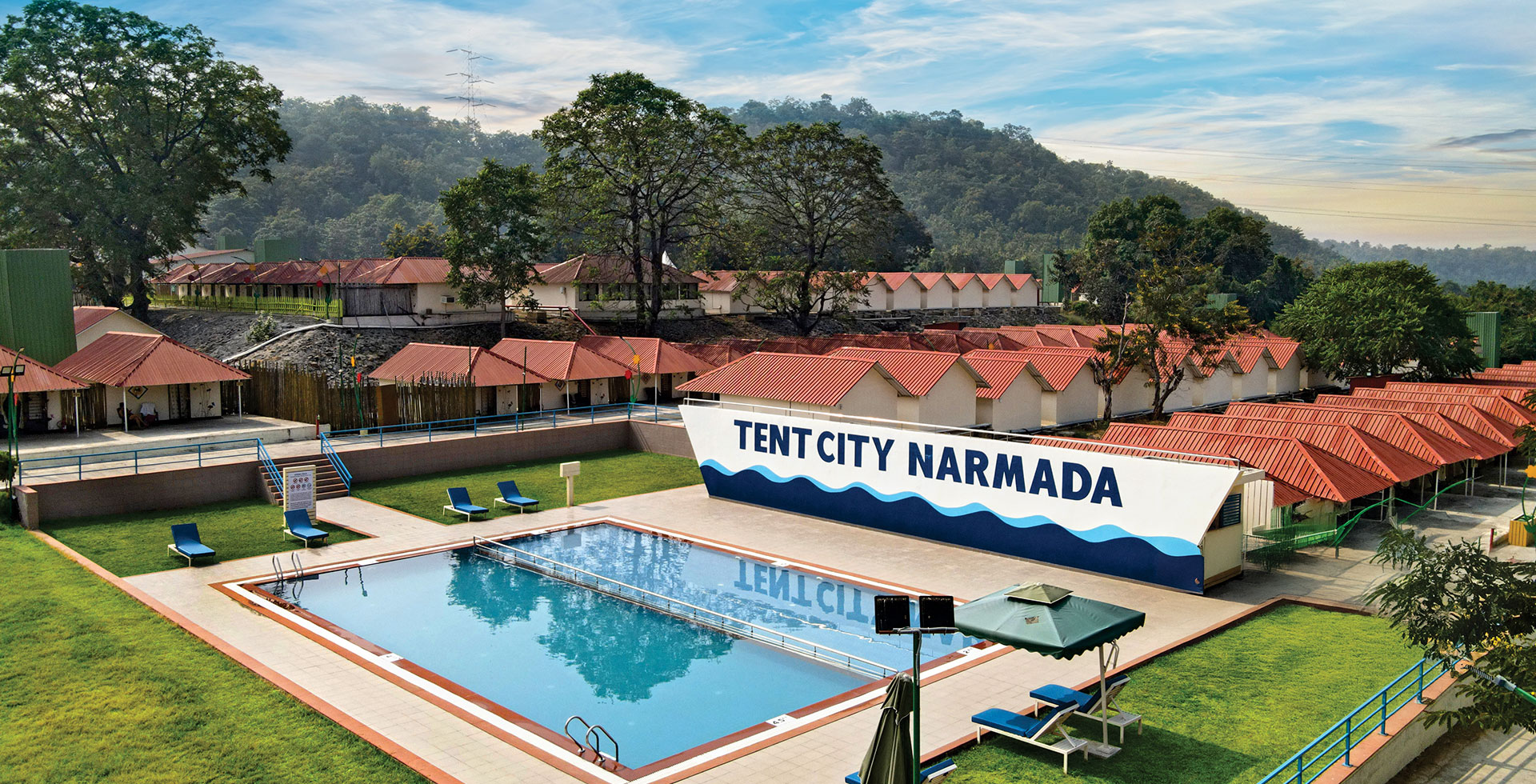 Tent City Narmada includes all luxurious air-conditioned tents. Each tent is equipped with modern amenities, all meals (breakfast, lunch, high tea, dinner), and can accommodate up to three people. This site has pool access, an on-site restaurant, and is family-friendly. We do not allow pets.