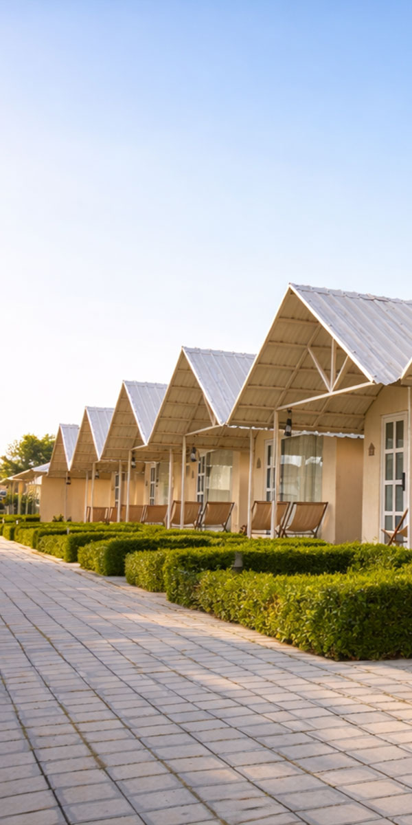 Experience the divine charm of Ayodhya at PRAVEG Saryu Resort — a haven of spiritual luxury nestled by the sacred Saryu River. Located next to the famed Ram Katha Park, the vibrant stage of Uttar Pradesh’s celebrated ‘Ramleela’ folk performances, our resort blends devotion with comfort in perfect harmony.