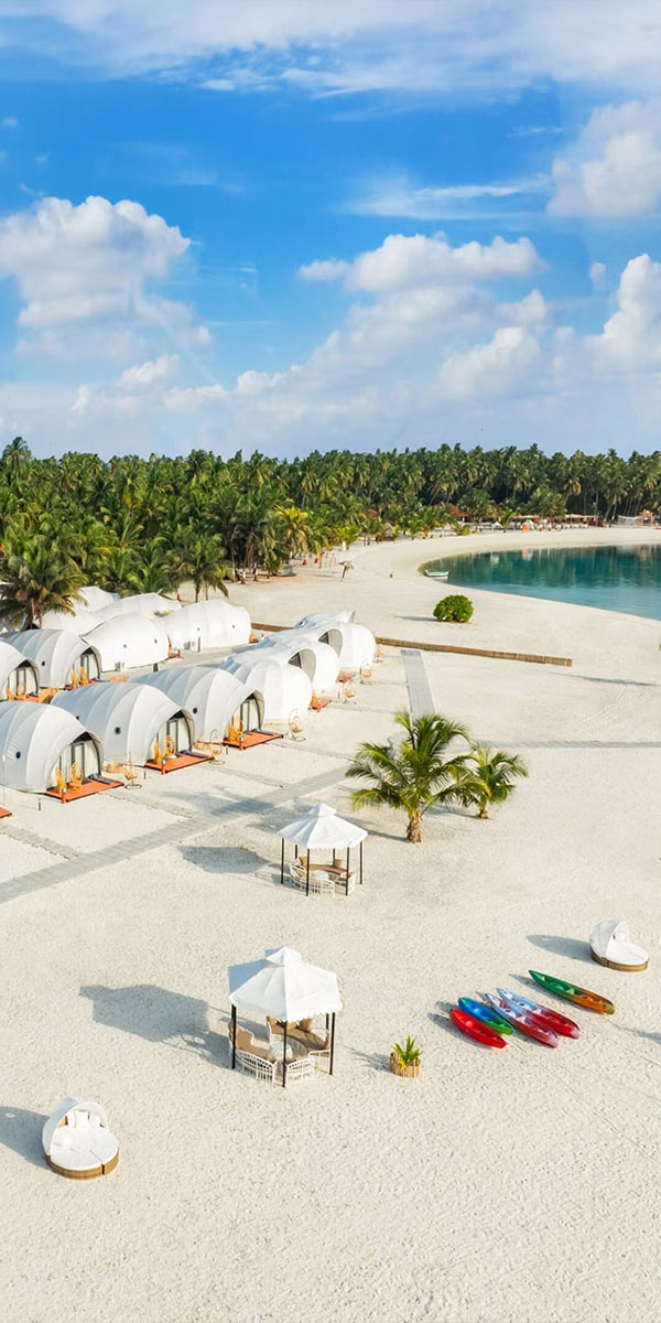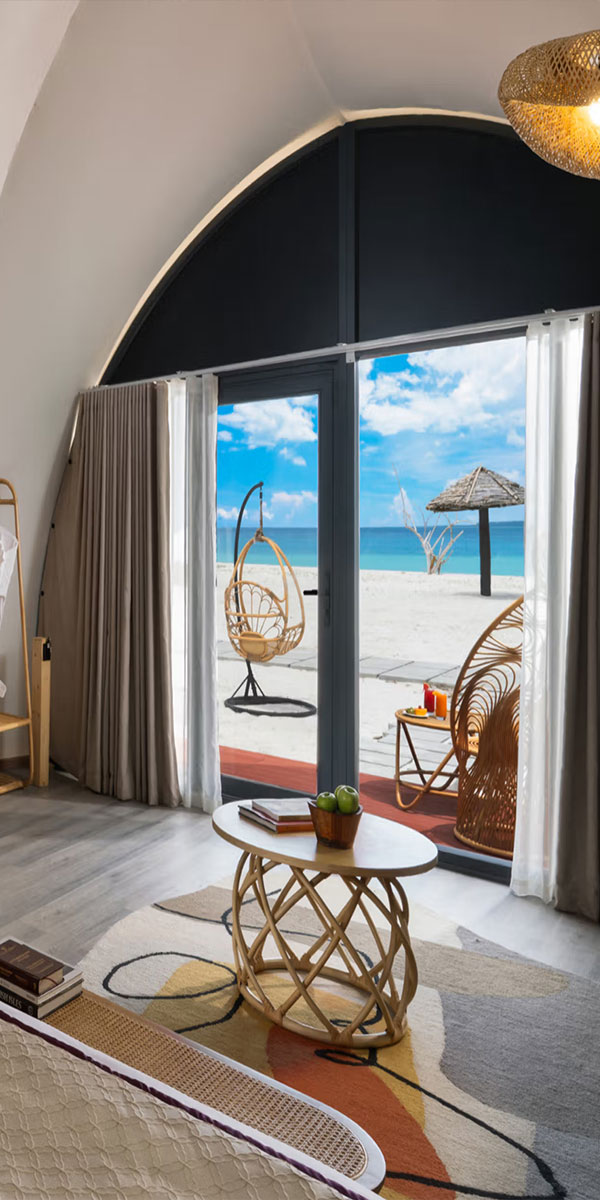 Praveg Atoll's Lakshadweep comprises unique cocoon-shaped and snail shell-shaped cottages offering an exquisite sense of comfort and luxury. Each room has an exquisite and spacious design with an elegant flair, sea-facing views, and modern amenities to keep the island's charm.